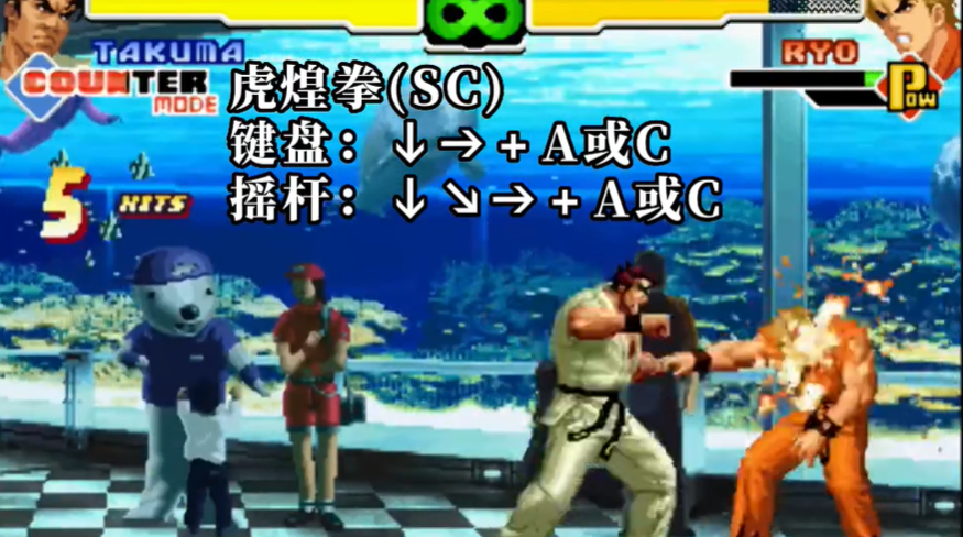 *龙虎乱舞:↓↘→↘↓↙←+A或C