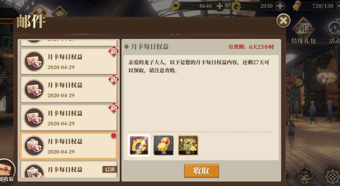 每天这2个时间段,玩家可以上线免费领取体力。