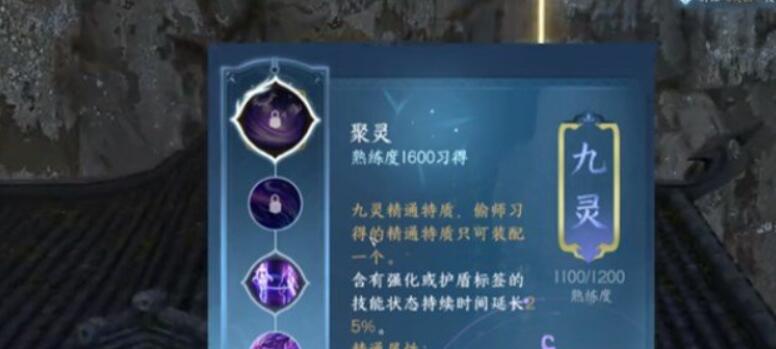 血河pve偷师还可以选择九灵的特质【聚灵】可以增加护盾的时间又可以提升攻击。