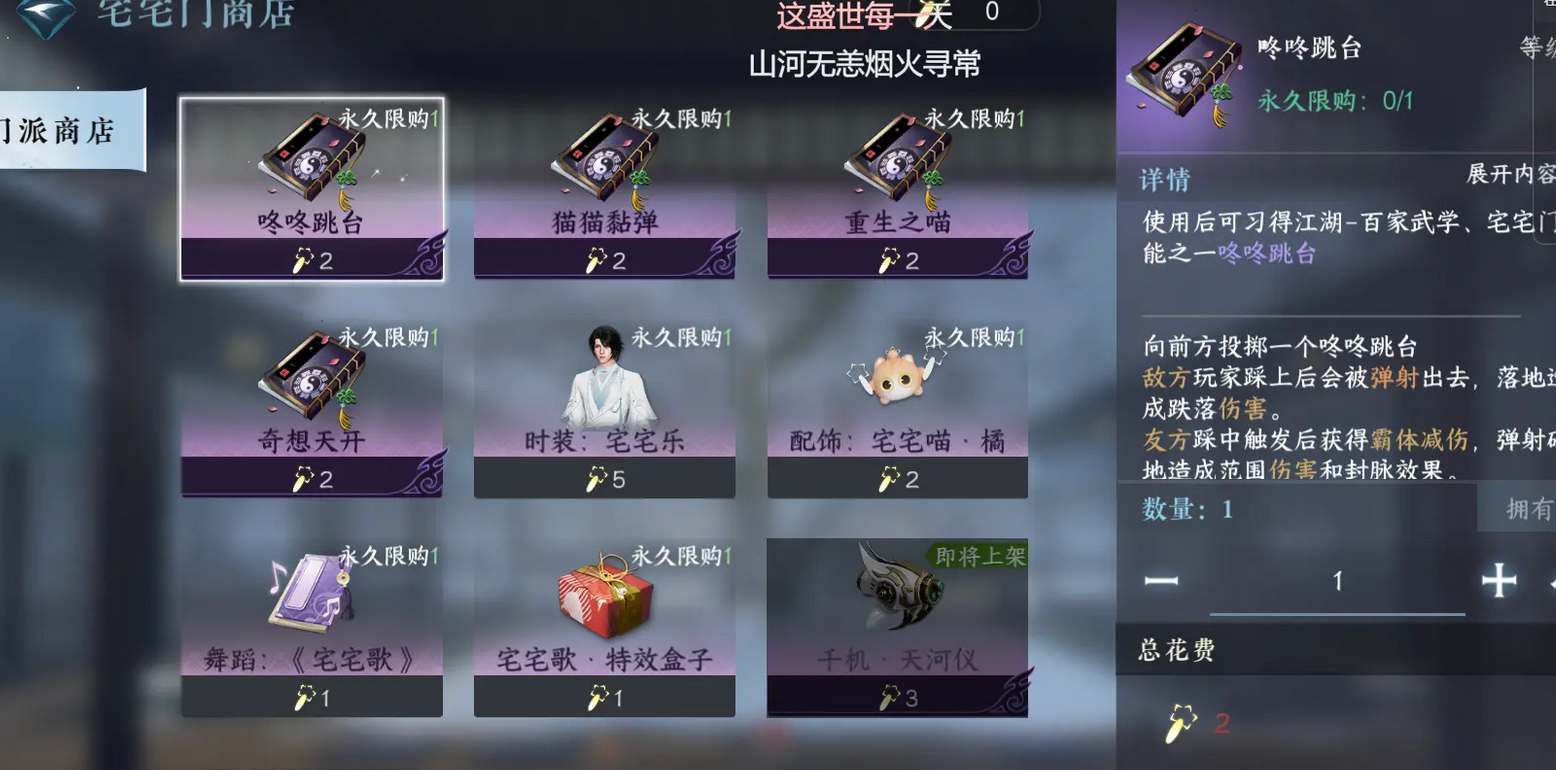 玩家在加入门派之后,可以在宅宅门(128.88)对话宅宅门门主查看商店,兑换时装奖励。