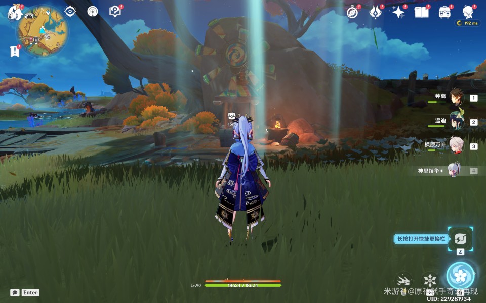 来到这个位置后,切出弓箭角色,如图八所示,在风史莱姆经过靶心时将其射爆,两轮挑战后就可以获取宝箱了(不建议使用夜兰,温迪较为合适)