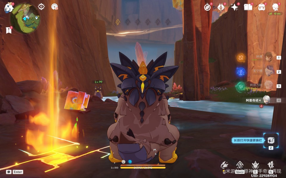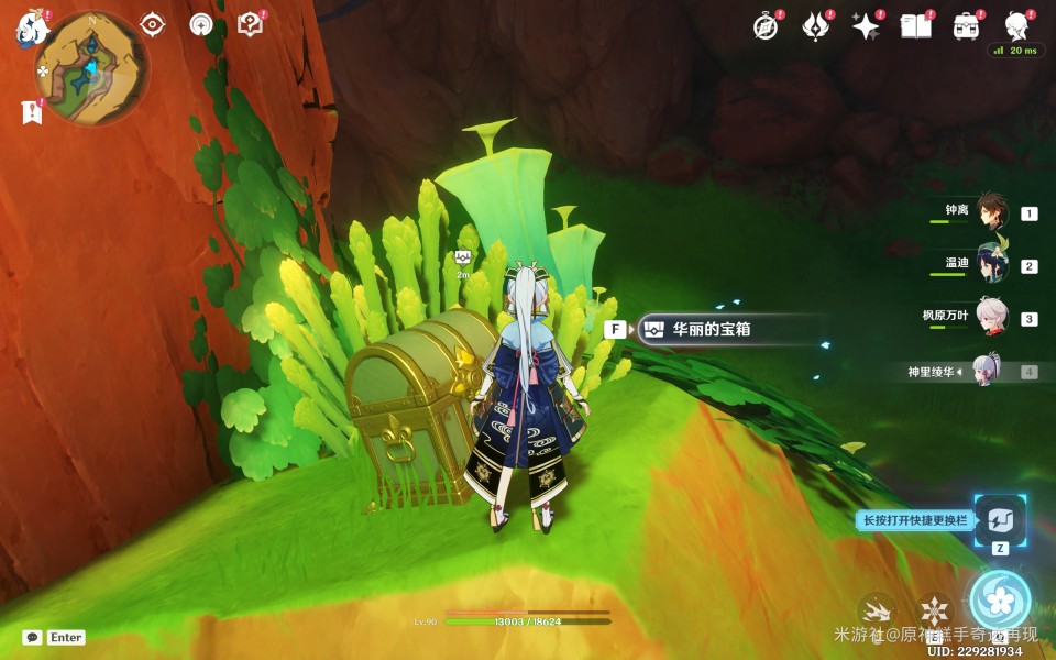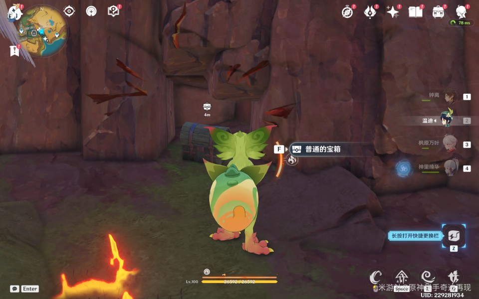 来到这个位置后,将中央的矿石打碎,打碎后戳破生成的泡泡,到旁边进行龙附魂后,回到原位获取宝箱,效果如图四所示~