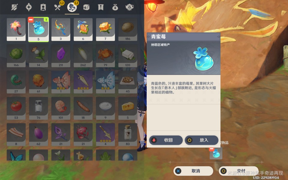 来到这个位置后,捡起旁边的青蜜莓并进行供奉(如图十所示),即可获取宝箱