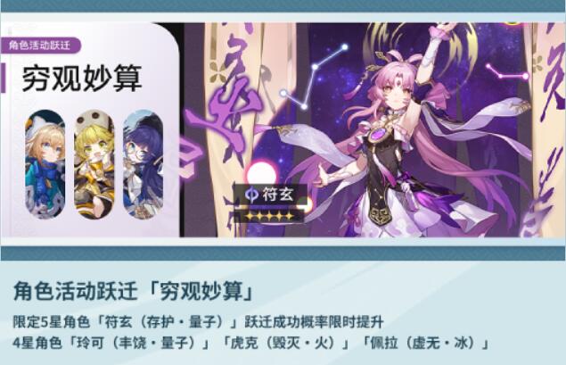 1、卡池角色:符玄、玲可、虎克、佩拉