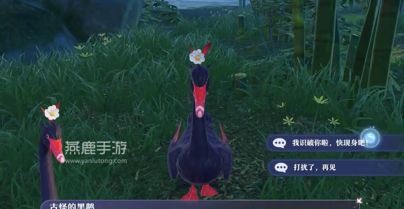 3、最后和古怪的黑鹅对话,选择识破,即可完成迷路的黑鹅任务。