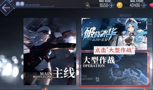 2、进入出击页面,点击右下方的大型作战。