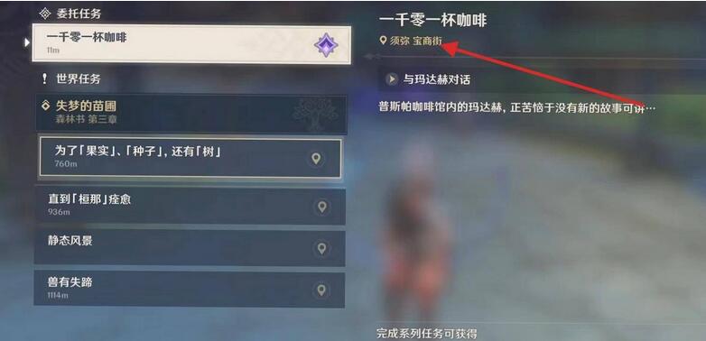 1、根据任务简要来到宝商街找到玛达赫领取任务“一千零一杯咖啡”,这是一个委托任务。