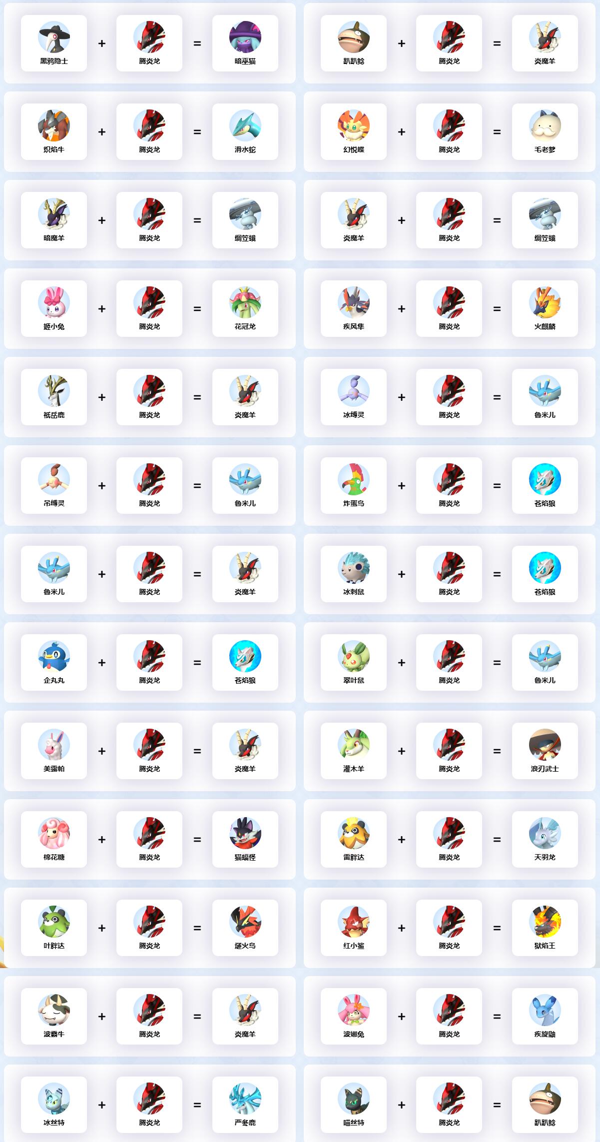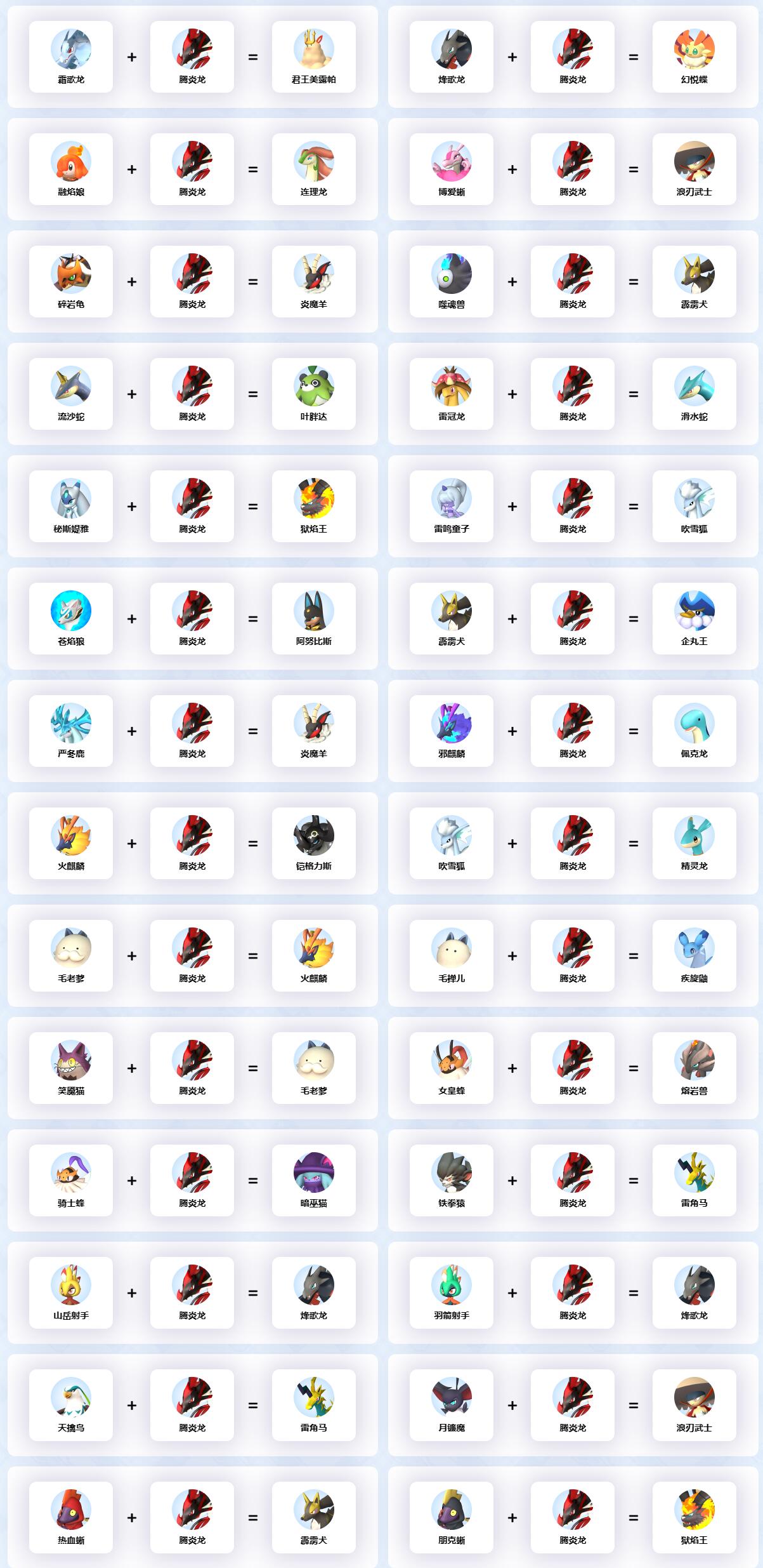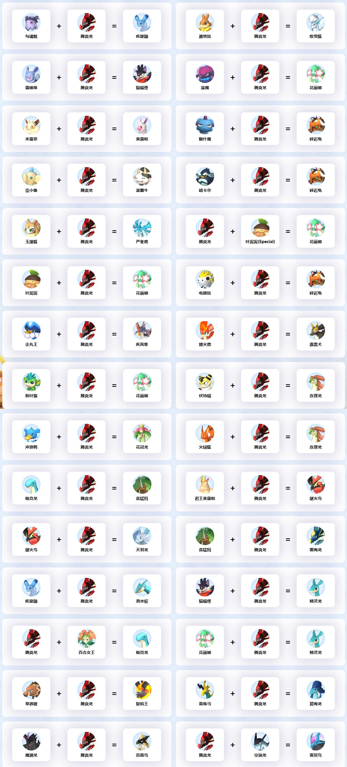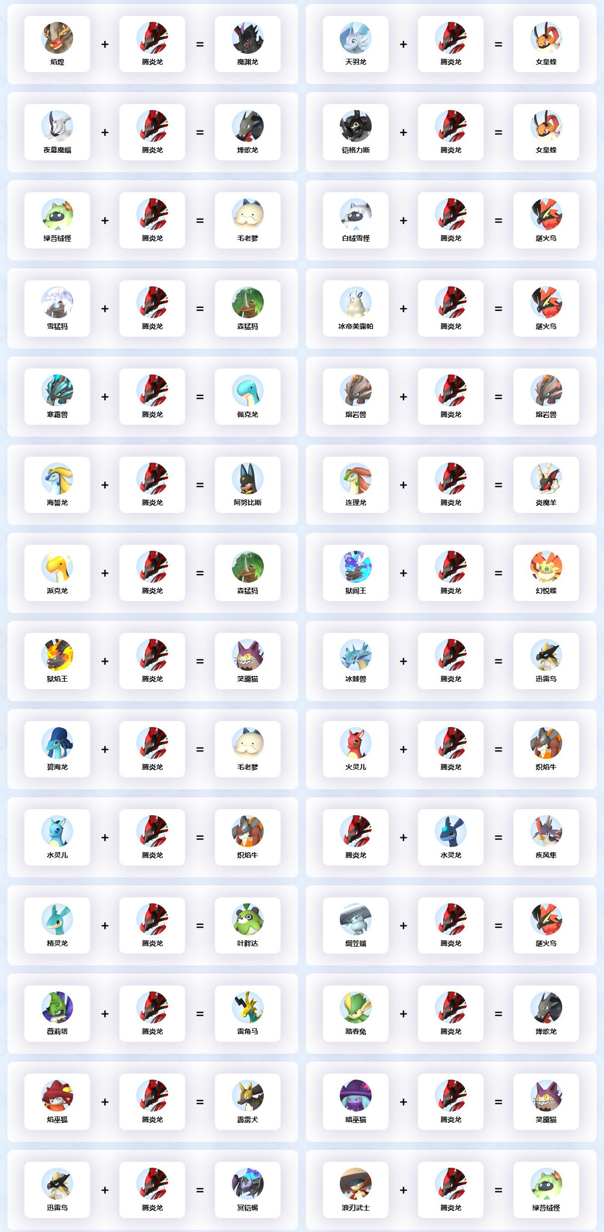 以上就是腾炎龙配种公式大全的所有的内容了,玩家只能通过本体之间进行配种,并且提供了腾炎龙作为父母代的配种公式,希望可以帮助到大家。