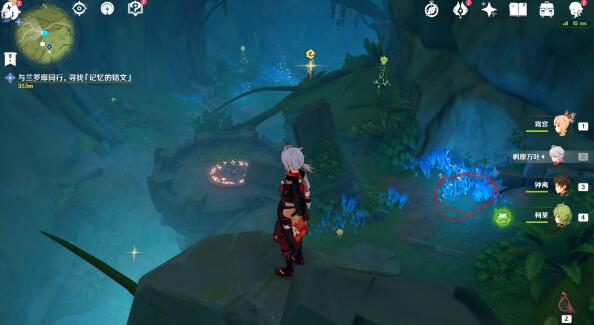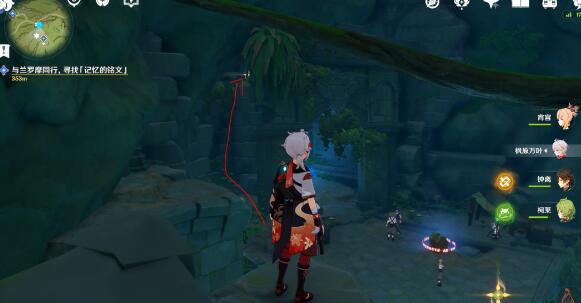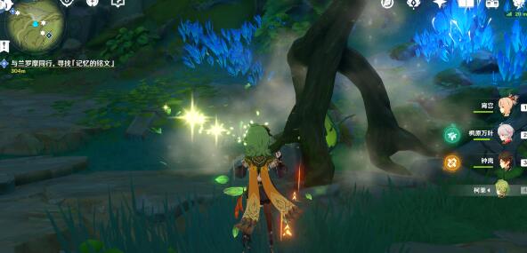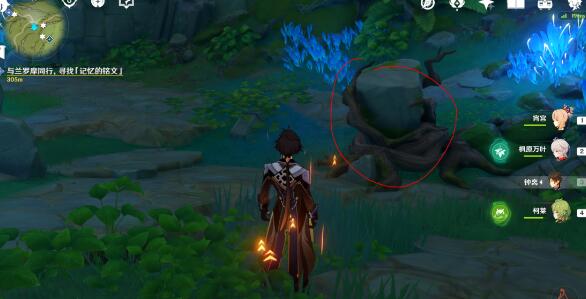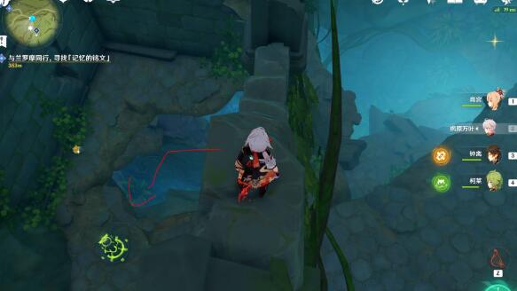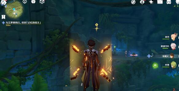 9、最后我们第4个草元素方碑从如图所示这里进去点亮激活即可解锁水位机关完成任务。