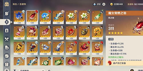2、多升级一些圣遗物和武器之类的,将那些没用的武器装备作为升级素材;