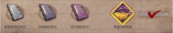 1、见闻:鹤家家臣的手记+吕坤海的手记+司马瑛的手记=希望中的绝望(解锁奖励:生命上限+5%)