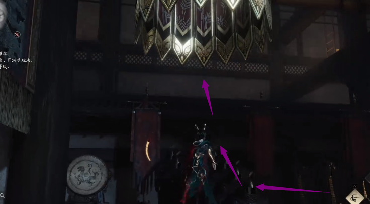 传送点出来后往前进入大殿,从神像右边的兵俑往上爬