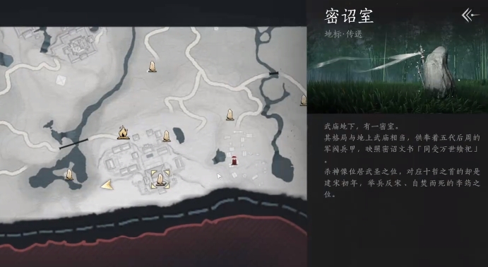 传送到武城王庙的密诏室,没解锁这个地方的话就需要先完成杀神出庙的任务