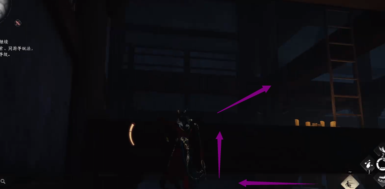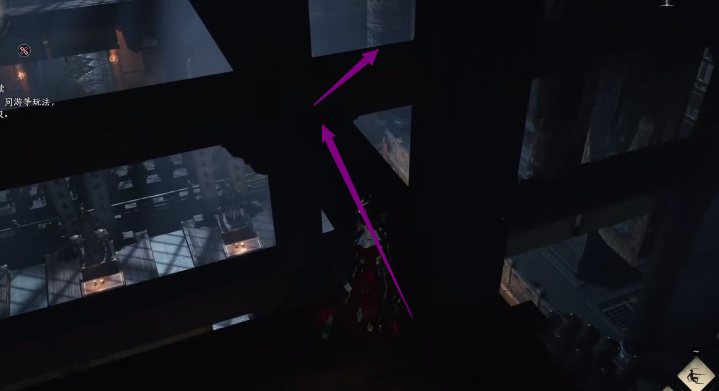 上去后右转跳上平台,可以看到一个小梯子,爬上梯子,这个平台其实是个横梁,很窄,小心别掉下去