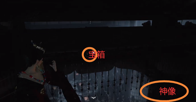 往神像的武器这边挪,会往下掉一点,然后神像面对的方向横梁上有个宝箱,打开就是骑龙回马