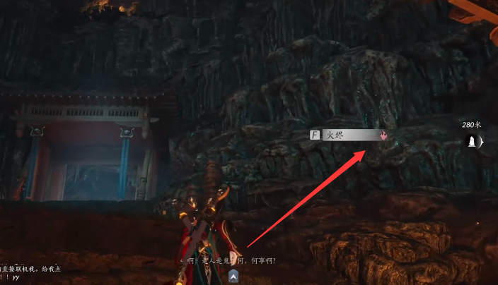 上面的左侧有个有火光的洞口,去那边