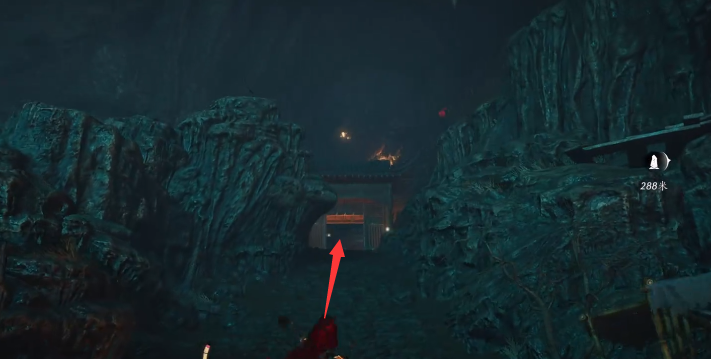 进了第一扇门去右边的大石头上往上跳