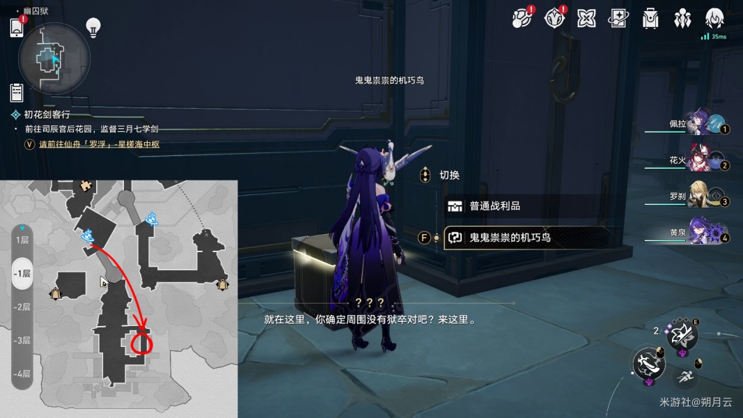 地点位于-1层,与位于此处的 “鬼鬼祟祟的机巧鸟”对话。