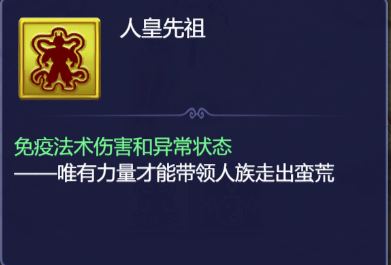 专属技能:人皇先祖——免疫法术伤害和异常状态