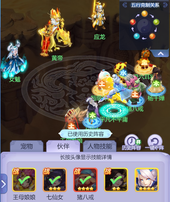 阵容推荐4:王母+3星七仙女(易伤)+4星猪八戒+金/杨千嬅+超级神猴