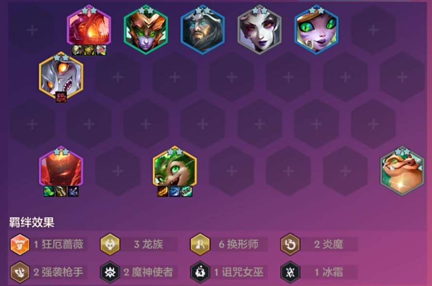 2、羁绊效果:3龙族6换形师2炎魔2强袭枪手