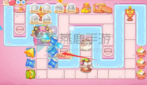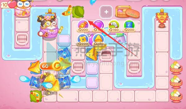 3、在左边放置几个冰锥塔来降低小怪的移动速度。