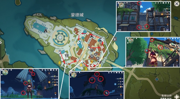 1、蒙德城下半部分,采集有点麻烦都在房子上面。
