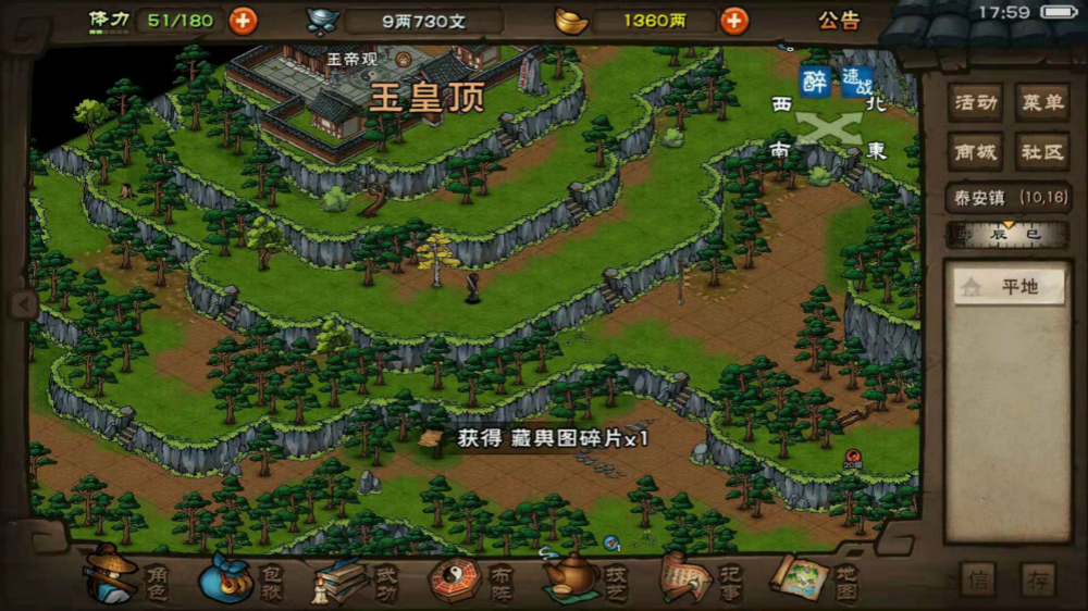 1、去泰安镇泰来客栈(29,29)