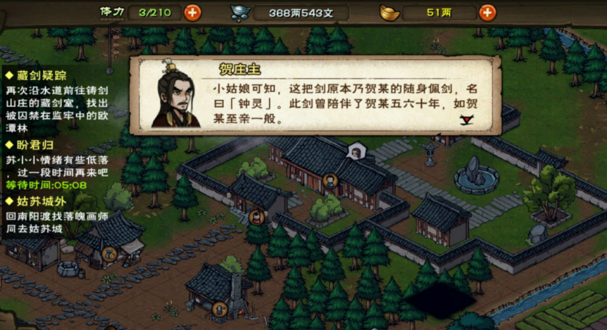 4、把剑交给贺庄主,获得5灵虚丹和6声望