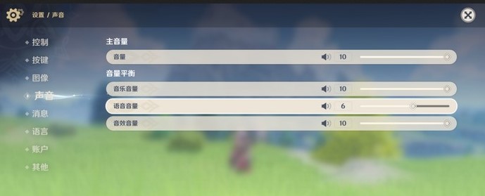 1、打开游戏进入设置界面,找到声音设置反复调节语音音量,直到听到派蒙的提示声。