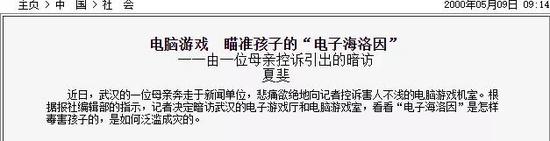 2000年5月,光明日报一篇《电脑游戏 瞄准孩子的‘电子海洛因’——由一位母亲控诉引出的暗访》,开启了全社会对电子游戏的严防死守,21世纪的前十年,国内游戏文化都被‘有害’的阴云笼罩,电子竞技也不例外。