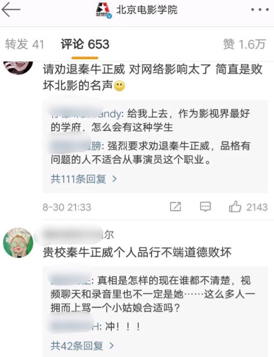 被爆出和吴亦凡在一起的时候收到了很多的祝福,但是后来一段疑似两人通话的视频被曝了出来,网友们纷纷质疑秦牛正威的人品问题,称其太想红了,尽管最后发文否认此次事件,但是网友们似乎并不买账。