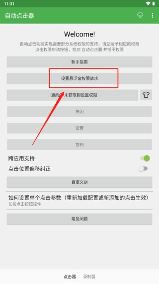 应用需要借助用辅助功能权限及悬浮窗权限来实现自动点击,在使用前请正确设置应用权限