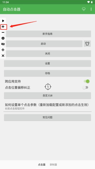 8、点击左侧图示位置可以开启点击,进入自动连点