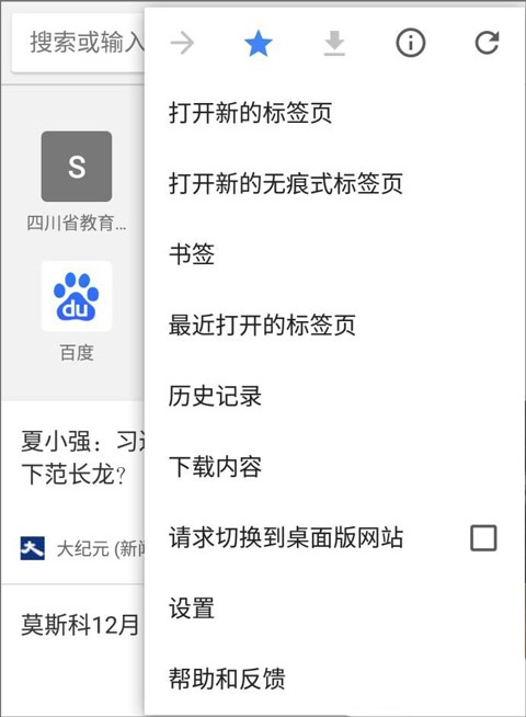 5、点击右上角有三个点,还可以设置切换到桌面版网页,打开新的标签等。