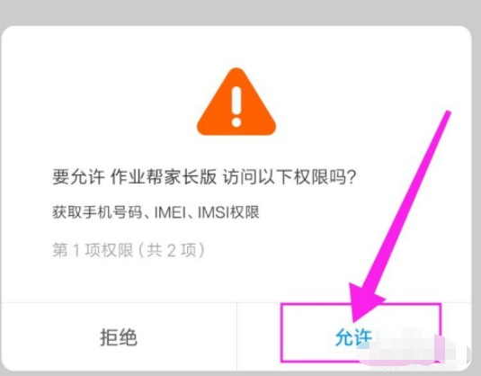 2、登录需要允许作业帮家长版访问手机设备的权限;