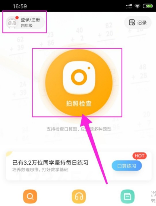 4、进入到作业帮家长版首页,对孩子的作业点击“拍照检查”,便可知道作业的情况;