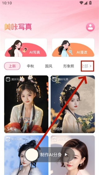 1、首先打开美咔写真app主页,点击页面中的全部功能。