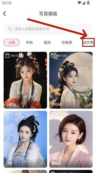 2、在软件所支持的功能列表中找到证件照功能,点击并打开证件照模版。