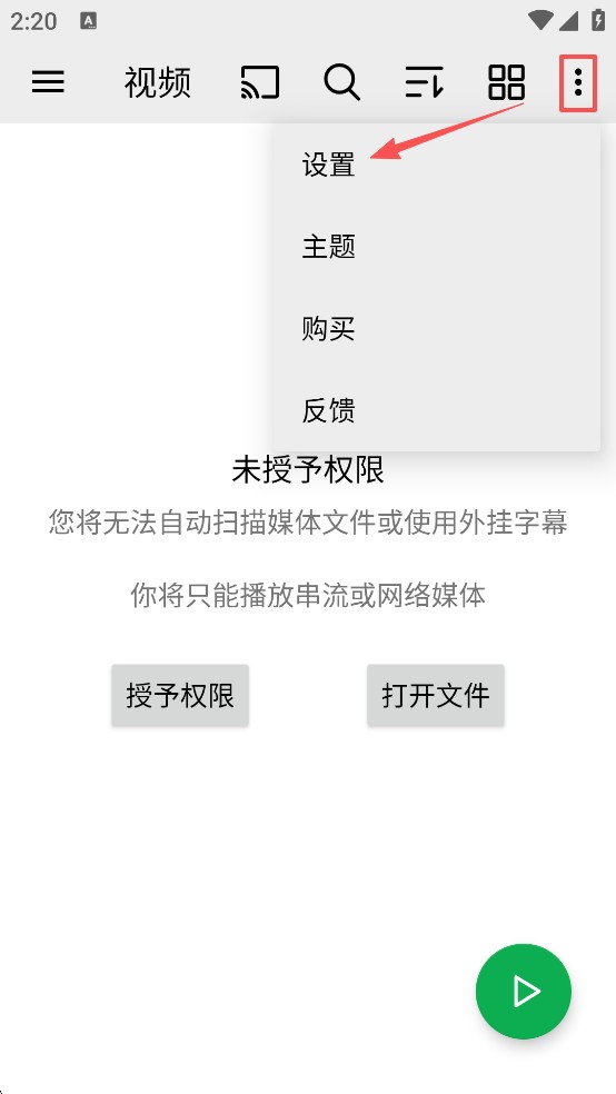 1、在本站下载安装OPlayer专业版app并打开,点击右上角更多-设置