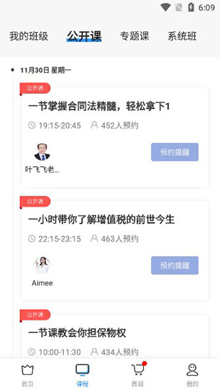 5、在课程界面,可以看到许多公开课、专题课,以及系统班的课程;