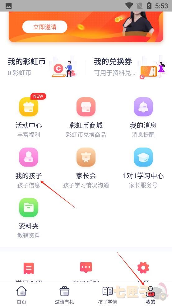 1、在本站下载安装掌门好家长app并打开,点击【我的】在点击【我的孩子】
