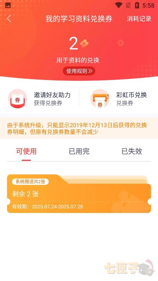 有效期兑换券有效期7天,过期作废(彩虹币兑换的兑换券除外)