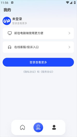 3、点击页面下方的个人图标,即可选择‘登录查看更多’;