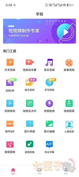 6、此外,字拍App还提供了丰富的特效视频功能,供用户根据需求进行创作与编辑。