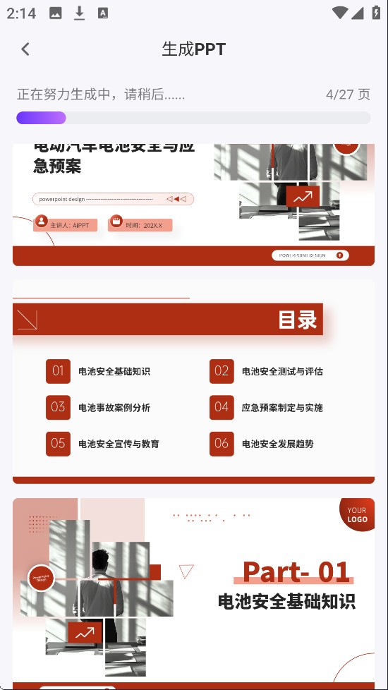 AiPPT手机版app是一款专为办公人士设计打造的手机PPT制作软件,并将以AI人工智能驱动,可以在线一键制作生成你所需的PPT。AiPPT自动生成手机版官方最新版软件接入了满血DeepSeek,基于先进的人工智能大模型和自然语言处理技术,只需输入主题,就能帮你生成高质量PPT。有需求的用户快去下载AiPPT手机版app,快速产出专业级PPT。