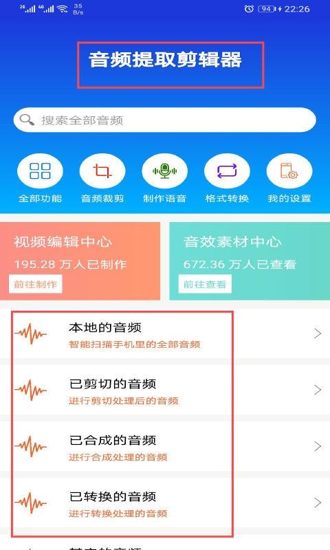 音频提取剪辑器app旨在为用户打造一个一站式的手机音频处理工具,还拥有海量的音频素材,用户可以尽情发挥自己的创意灵感,进行趣味的音频编辑,成为一名真正的音频剪辑大师!