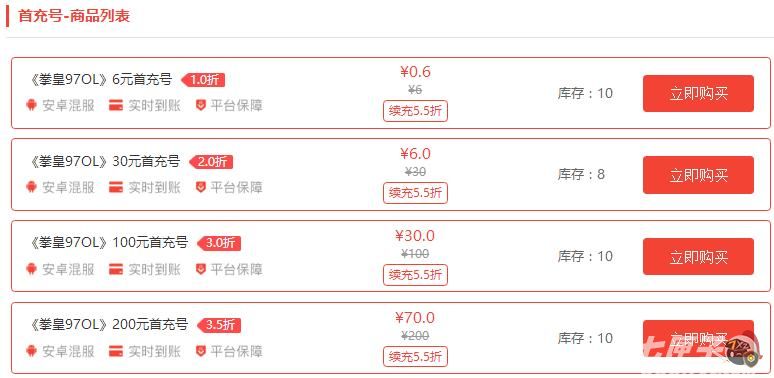 注意:拳皇97OL首充号的后续充值也都是打折的!