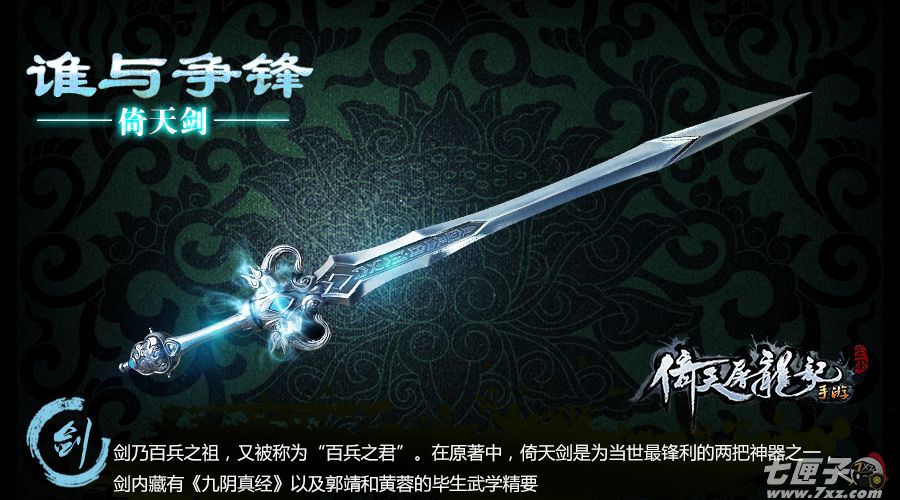 剑乃百兵之祖,又被称为“百兵之君”。在原著中,倚天剑是为当世最锋利的两把神器之一,剑内藏有《九阴真经》以及郭靖和黄蓉的毕生武学精要。《倚天屠龙记》手游中,美术组根据原著的描写,又仔细搜集有关剑的材料,对于核心兵器之一的倚天剑的刻画着实下了一番苦工,设计结果不仅符合原著的描述,还兼顾兵器的美感。无论是剑身上的剑尖,剑刃,血槽乃至剑柄上的护手,每一处细节都尽显精致。相对于屠龙刀来说它更为精致小巧,似乎是一柄女性