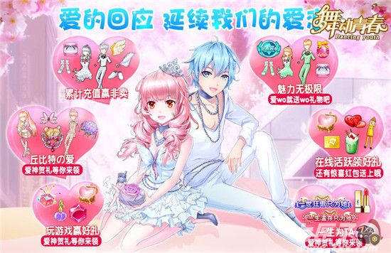 这个情人节我们不怕被虐狗,登录游戏即送伴侣饰品,虽然爱情是靠缘分的,如果准备充足和果断出击仍然打动不了女神的话,那也不要紧,明日《舞动青春》手游保证绝不让任何一个人落单,KIKI酱将为单身旺们准备情人节大礼包:鲜花、白玫瑰、男/女盆友饰品1天。